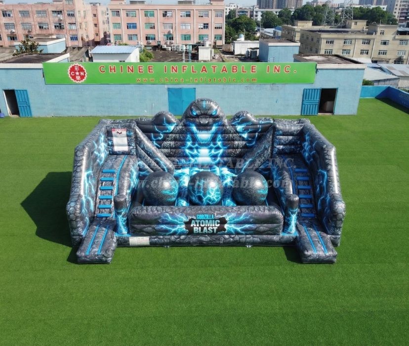 T11-4750E Godzilla Theme Inflatable Wipeout Big Balls Obstacle Course
