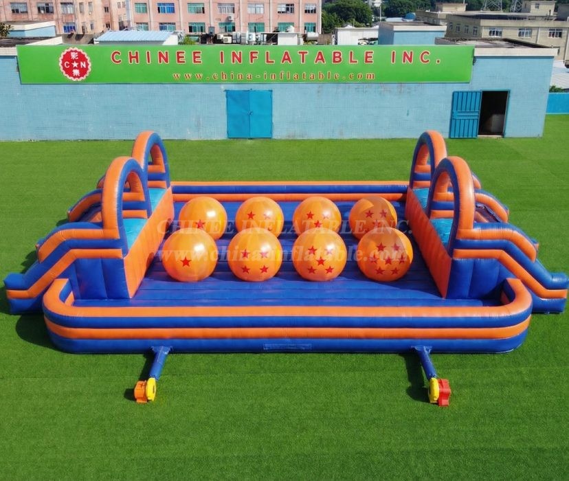 T11-4751F Dragon Ball Theme Inflatable Dual Wipeout Big Balls Obstacle Course