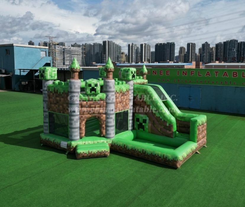 T2-8807 Minecraft Theme Bouncy Castle with Slide & Pool