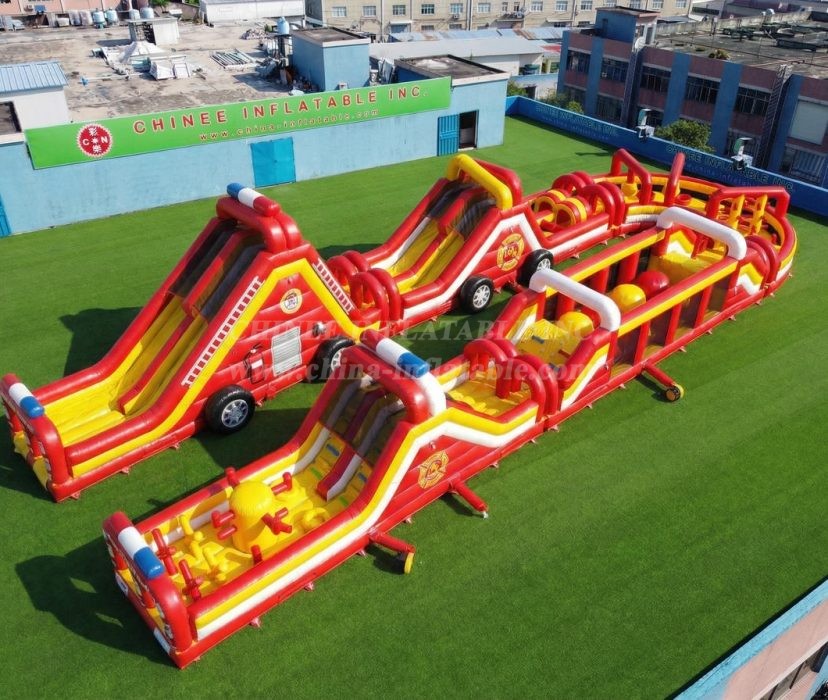 CR2-555 Firetruck Theme Giant Inflatable Obstacle Courses Challenging Run