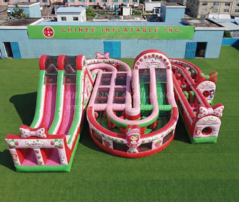 CR2-837 Strawberry Shortcake Theme Giant Inflatable Obstacle Courses Challenging Run