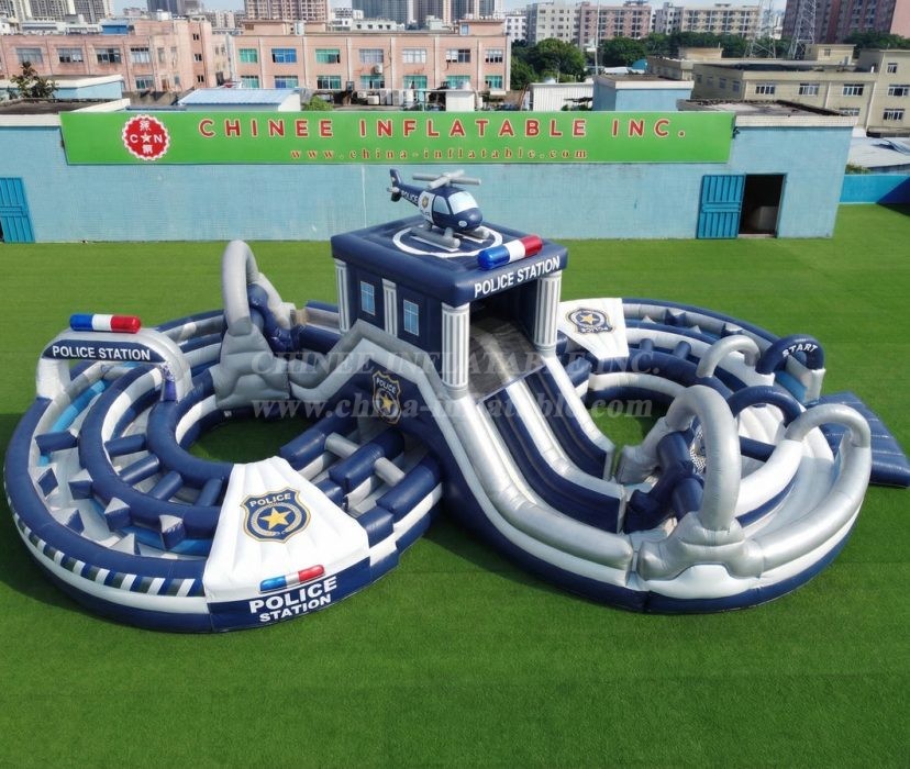 CR2-994 Police Station Theme Ginat Inflatable Obstacle Courses Challenging Run