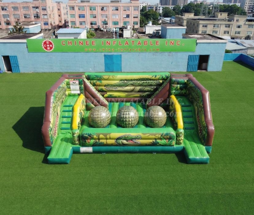 T11-4750A Crocodile Theme Inflatable Wipeout Big Balls Obstacle Course