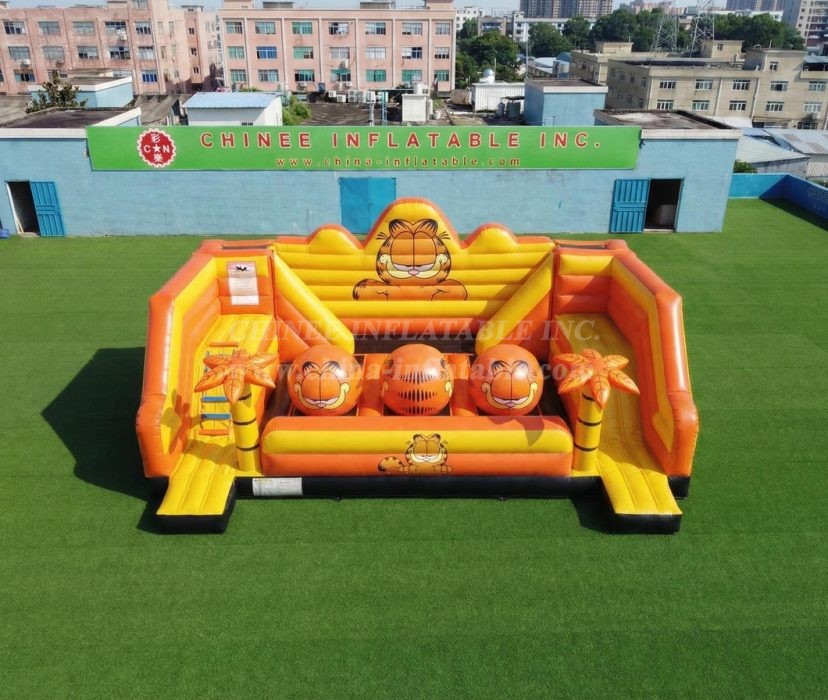 T11-4750D Garfield Theme Inflatable Wipeout Big Balls Obstacle Course