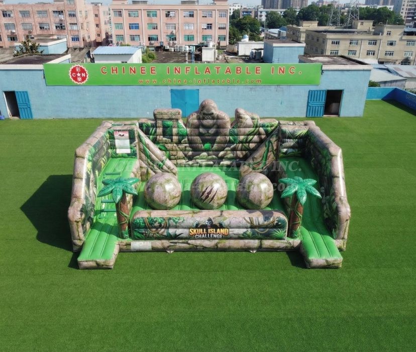 T11-4750G King Kong Theme Inflatable Wipeout Big Balls Obstacle Course