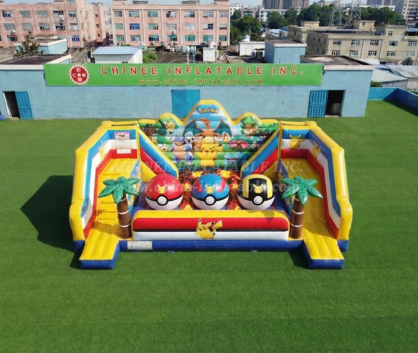 T11-4750L Pokemon Theme Inflatable Wipeout Big Balls Obstacle Course
