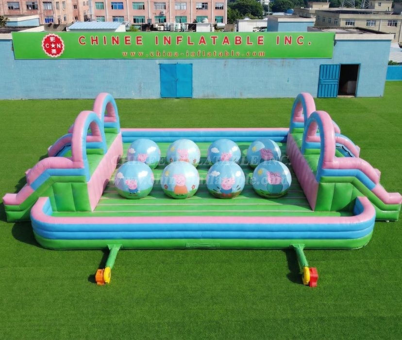 T11-4751R 小猪佩奇主题充气双人平衡挑战大球障碍赛道