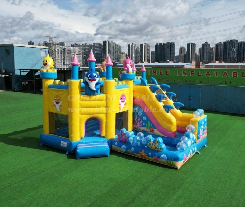 T2-8772 鲨鱼宝宝主题带滑梯和水池充气城堡