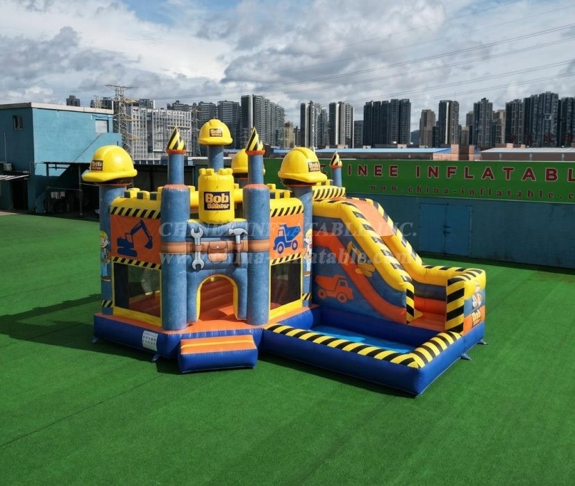 T2-8784 Bob The Builder Theme Bouncy Castle with Slide & Pool