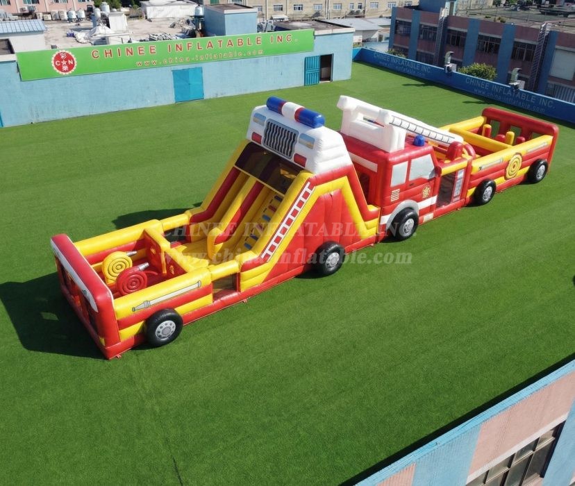 T7-4726 Firetruck Theme Inflatable Obstacle Courses