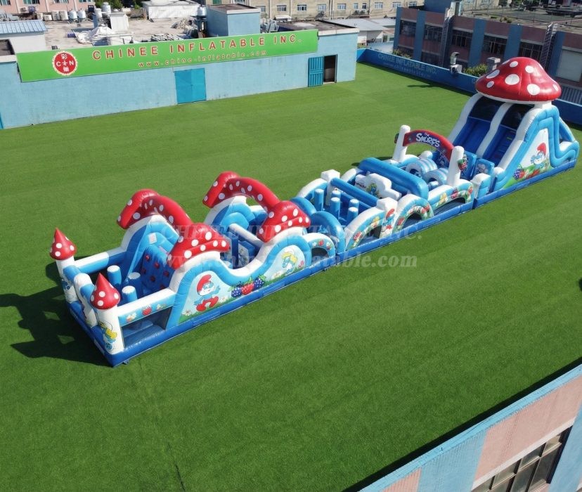 T7-4827 The Smurfs Theme Inflatable Obstacle Courses